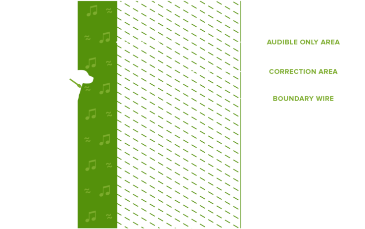 Hidden fences are created by burying a ‘boundary wire’ a few inches underground around your property. The buried wire carries a harmless, low level radio signal from a transmitter installed in your house or garage. Your pet wears a lightweight, waterproof receiver collar that recognizes the radio signal. As your pet approaches the buried wire, the receiver collar emits a warning signal (audible or vibration). If your pet travels further, he will receive a mild but safe stimulation (also called a “correction”) from the receiver collar. Through a training program, your pet learns to recognize his fence boundaries and learns to stop at the warning signal. Although there are differences in some of the product features, this is how all hidden fences work (DogWatch®, Invisible Fence® and other radio fence brands.)